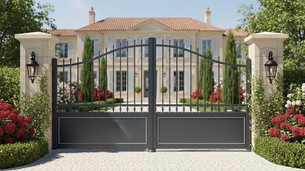 Chaque portail sur mesure est peint par thermolaquage dans notre propre usine avec des poudres certifiées Classe 2. Ce procédé offre une protection durable et des couleurs résistantes aux UV et à la corrosion, y compris en milieu salin.
