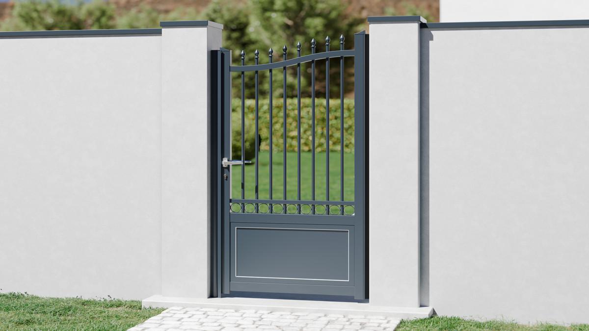 Apportez le charme du fer forgé traditionnel allié à la modernité et à la légèreté de l’aluminium avec le portillon ajouré ALPIN. Réalisé sur mesure, il allie élégance intemporelle et robustesse, pour un accès piéton harmonieux et durable, parfaitement assorti à votre portail ou votre clôture.