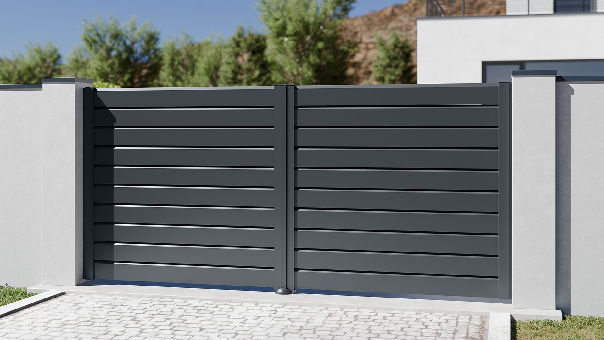 ATLAS – Portail 2 battants à lames persiennes horizontales