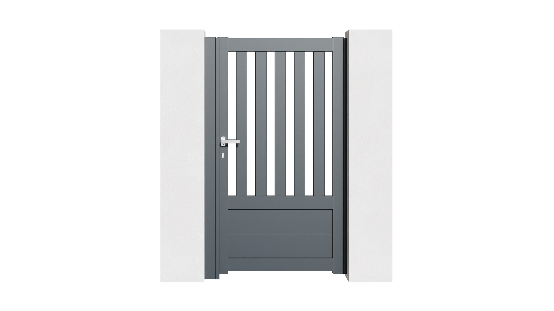 Alliez modernité, design et robustesse avec le portillon en aluminium semi-ajouré DENALI. Conçu sur mesure selon vos dimensions, il combine élégance et fonctionnalité, pour une entrée piétonne harmonieuse et durable qui s’adapte parfaitement à votre portail et votre clôture.