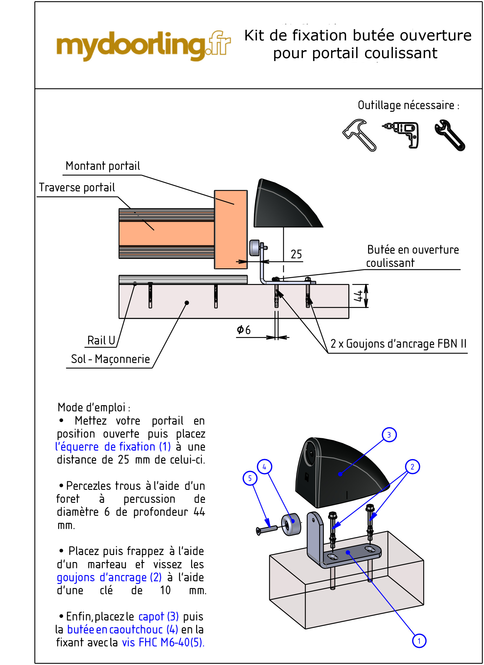 • 1 rail de guidage au sol en aluminium zingué ou inox