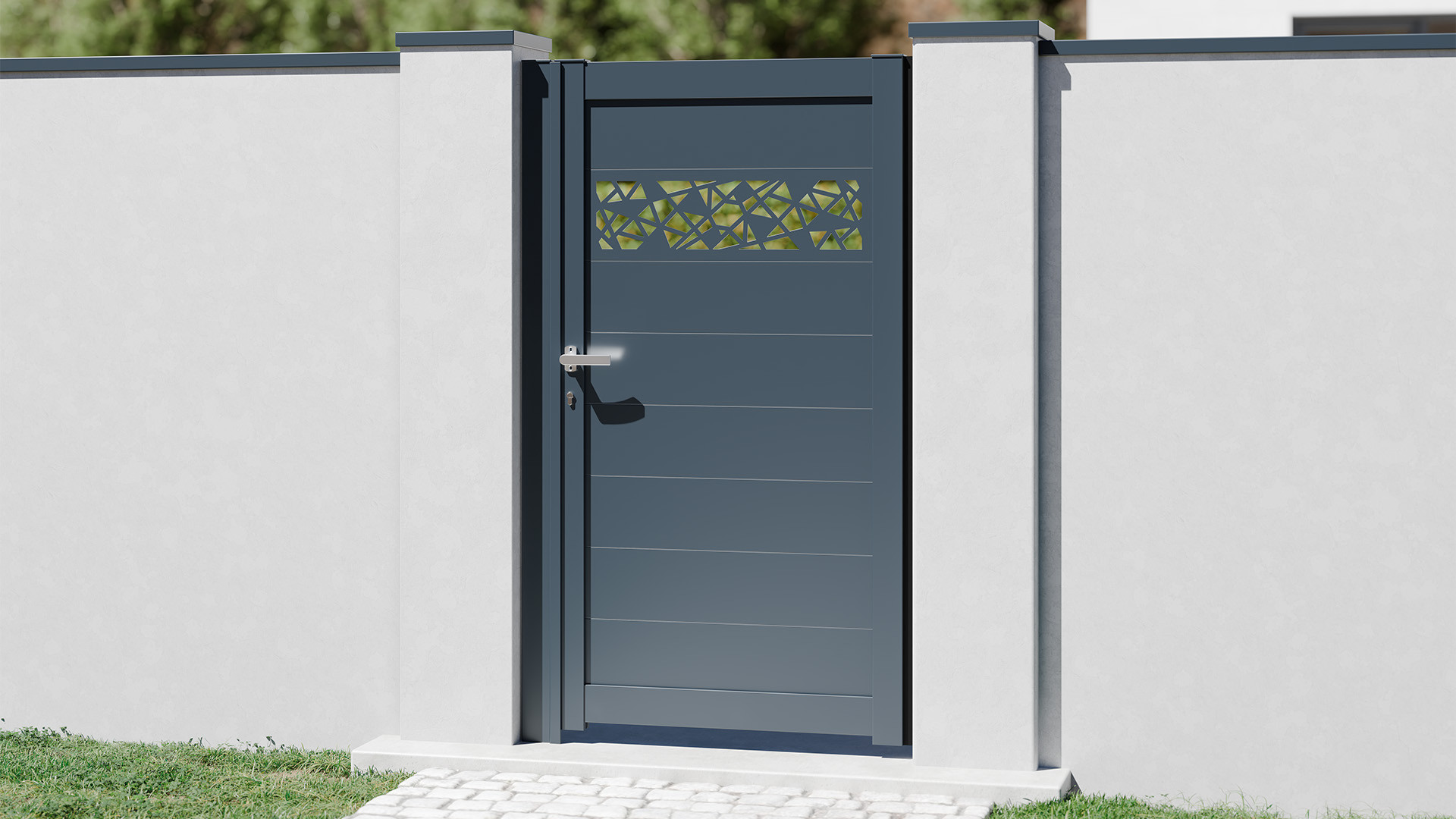 Associez votre portillon ETNA à un portail ou une clôture aluminium assortis pour une entrée moderne, cohérente et élégante, adaptée à votre habitation et à votre style.