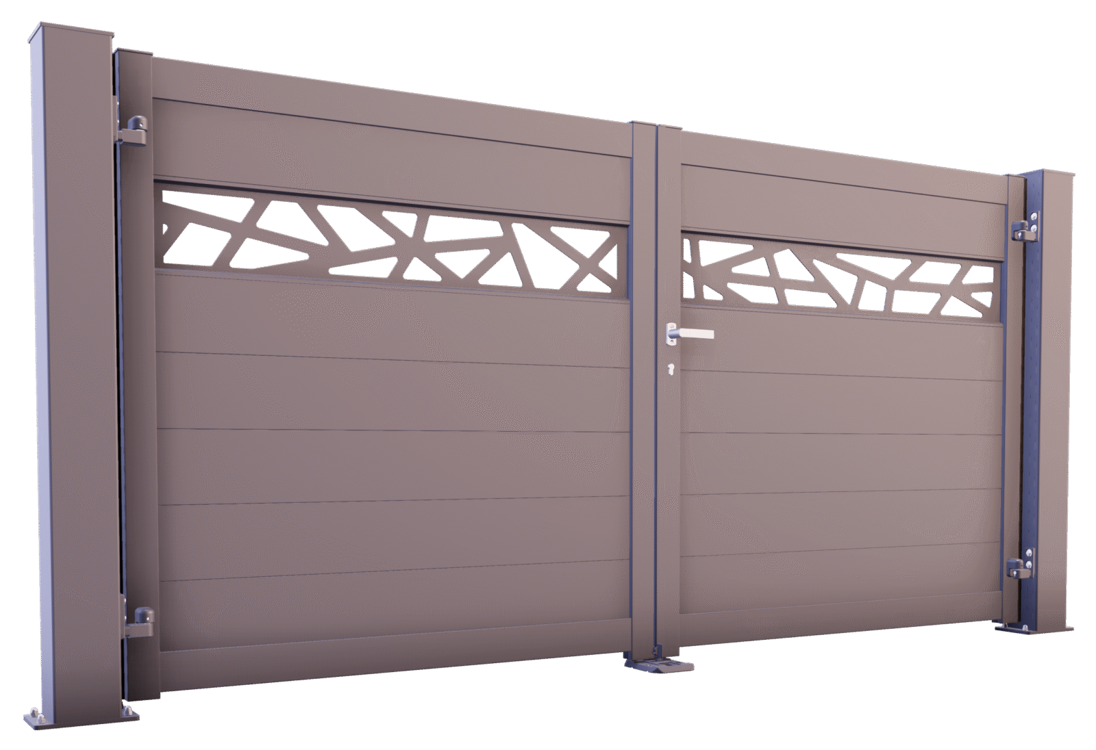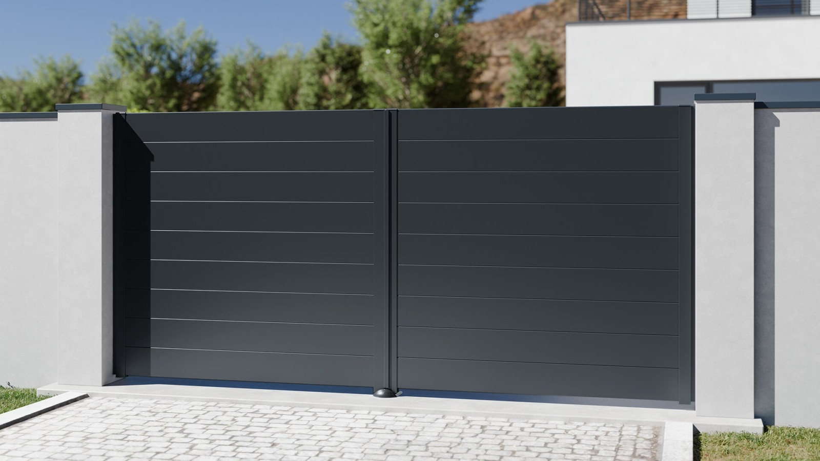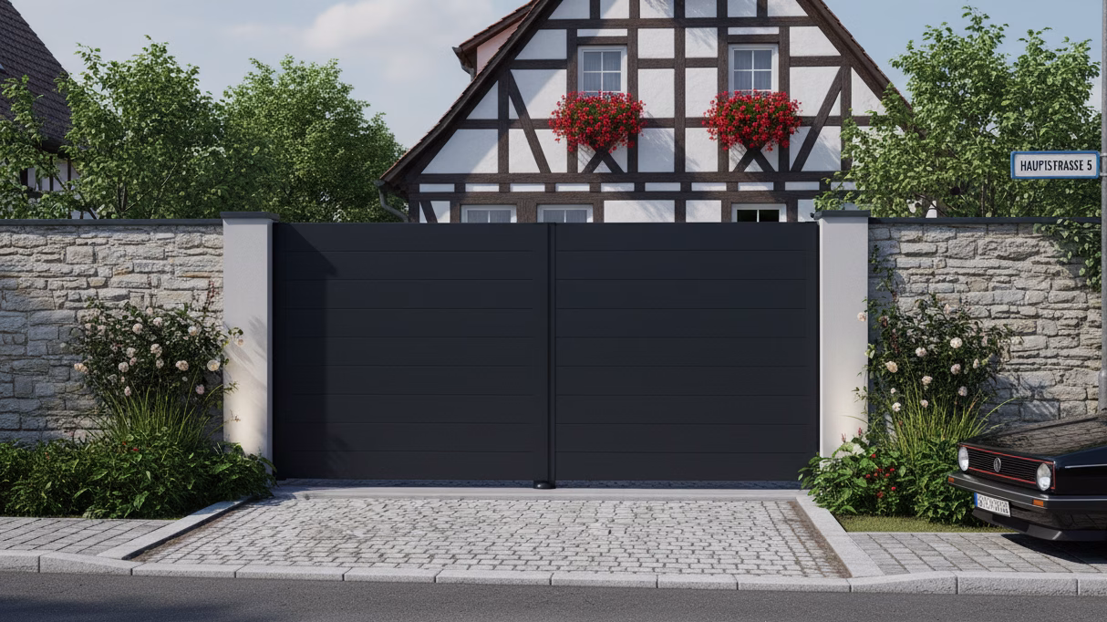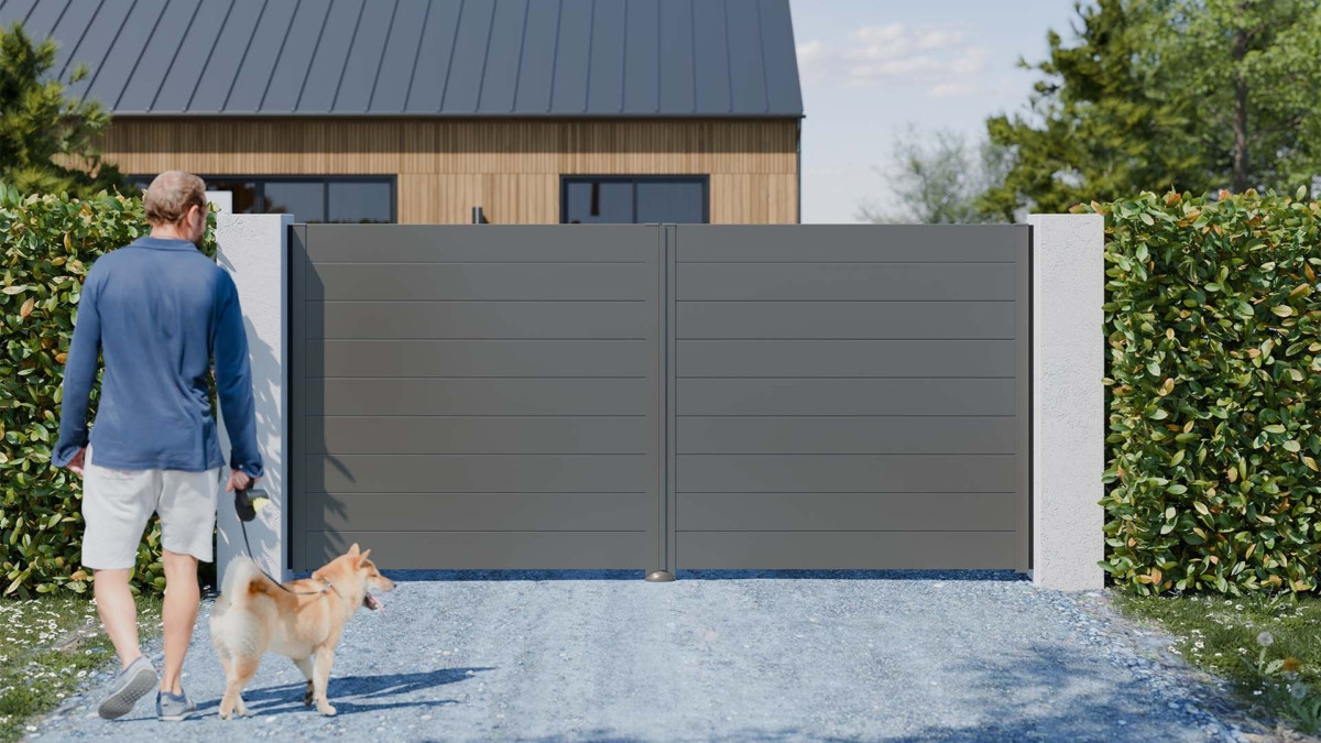 Le portail FUJI se distingue par sa surface lisse et uniforme, créant un rendu moderne et raffiné. Son remplissage plein garantit une intimité totale et une protection efficace contre les regards, tout en renforçant l’élégance de votre façade.