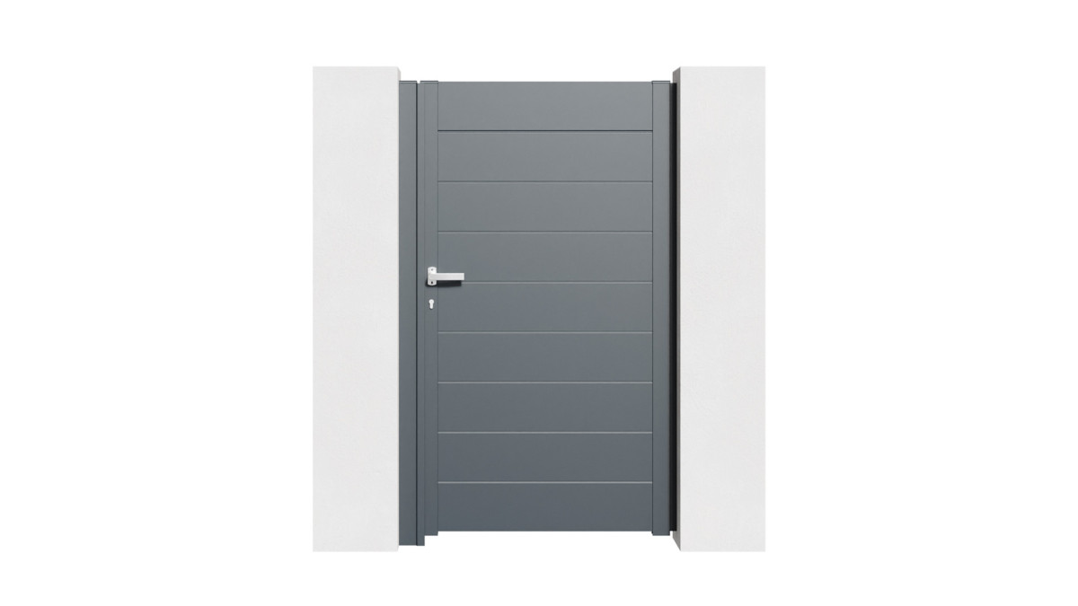 Le portillon FUJI se démarque par sa surface lisse et homogène, soulignée par des lames horizontales discrètes. Ce design sans cadre visible offre une finition ultra-moderne, parfaite pour les maisons d’architecte ou les extérieurs minimalistes. Son remplissage plein assure une protection totale de votre intimité tout en valorisant la façade de votre habitation.