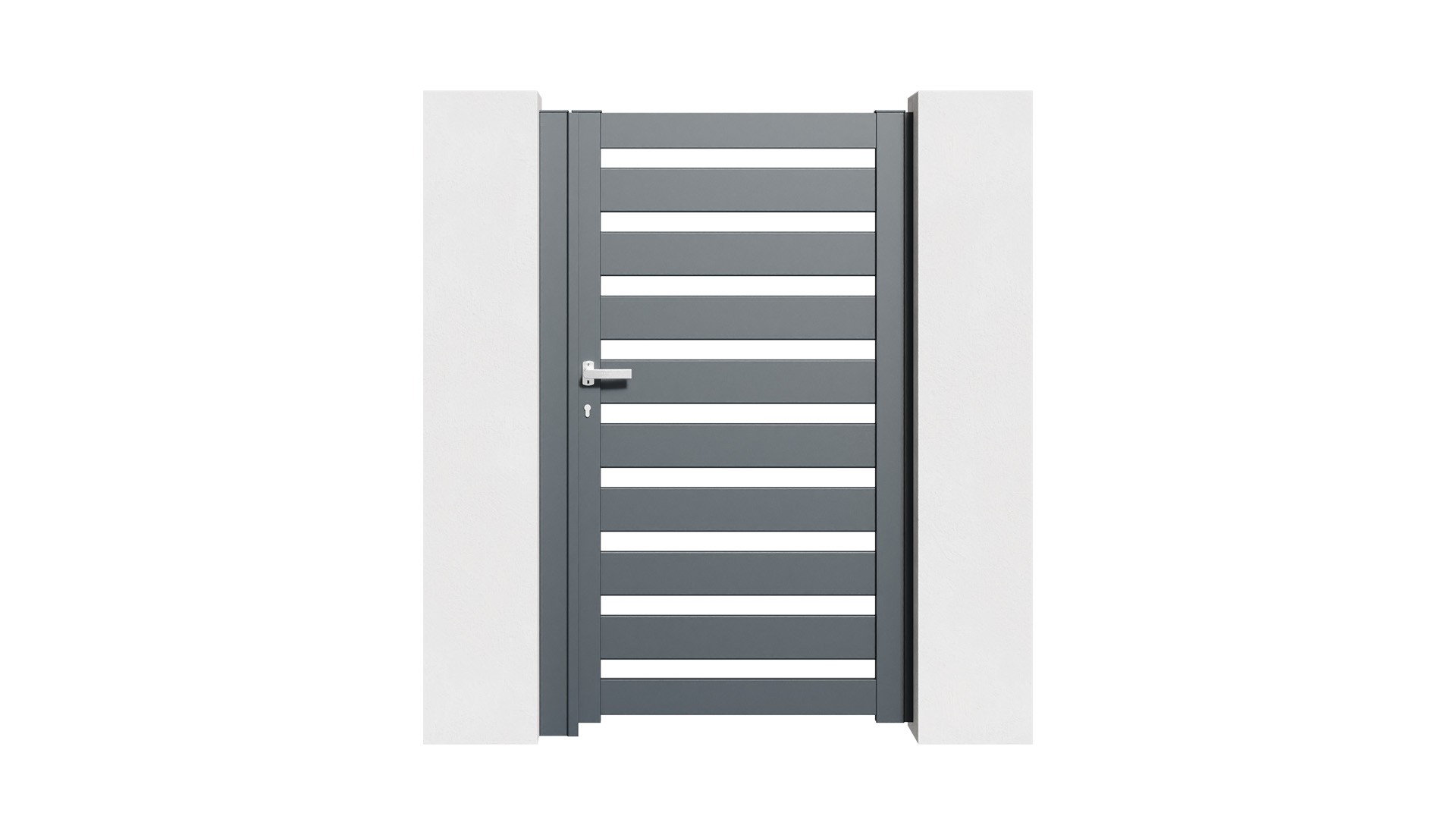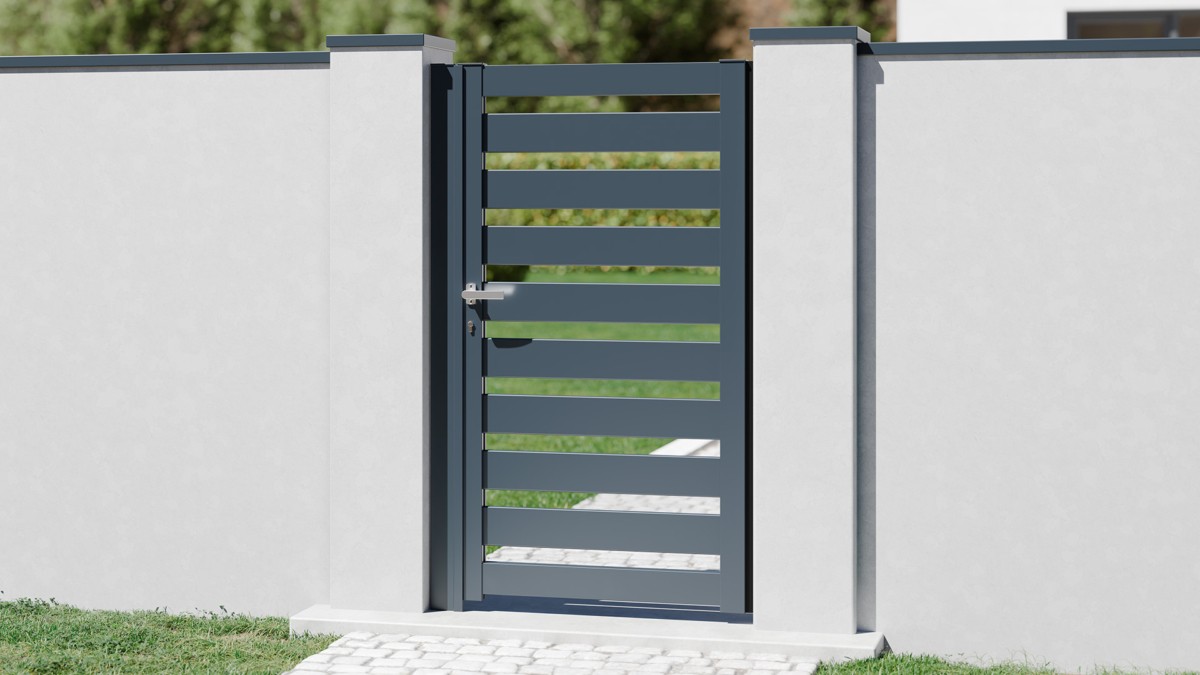 Le portillon NEVA se distingue par ses lames horizontales ajourées, qui laissent circuler la lumière et l’air tout en maintenant une protection visuelle légère et élégante. Ce design graphique s’intègre parfaitement aux architectures modernes et aux environnements contemporains, tout en créant une impression d’ouverture et de fluidité.