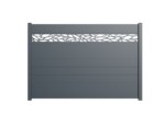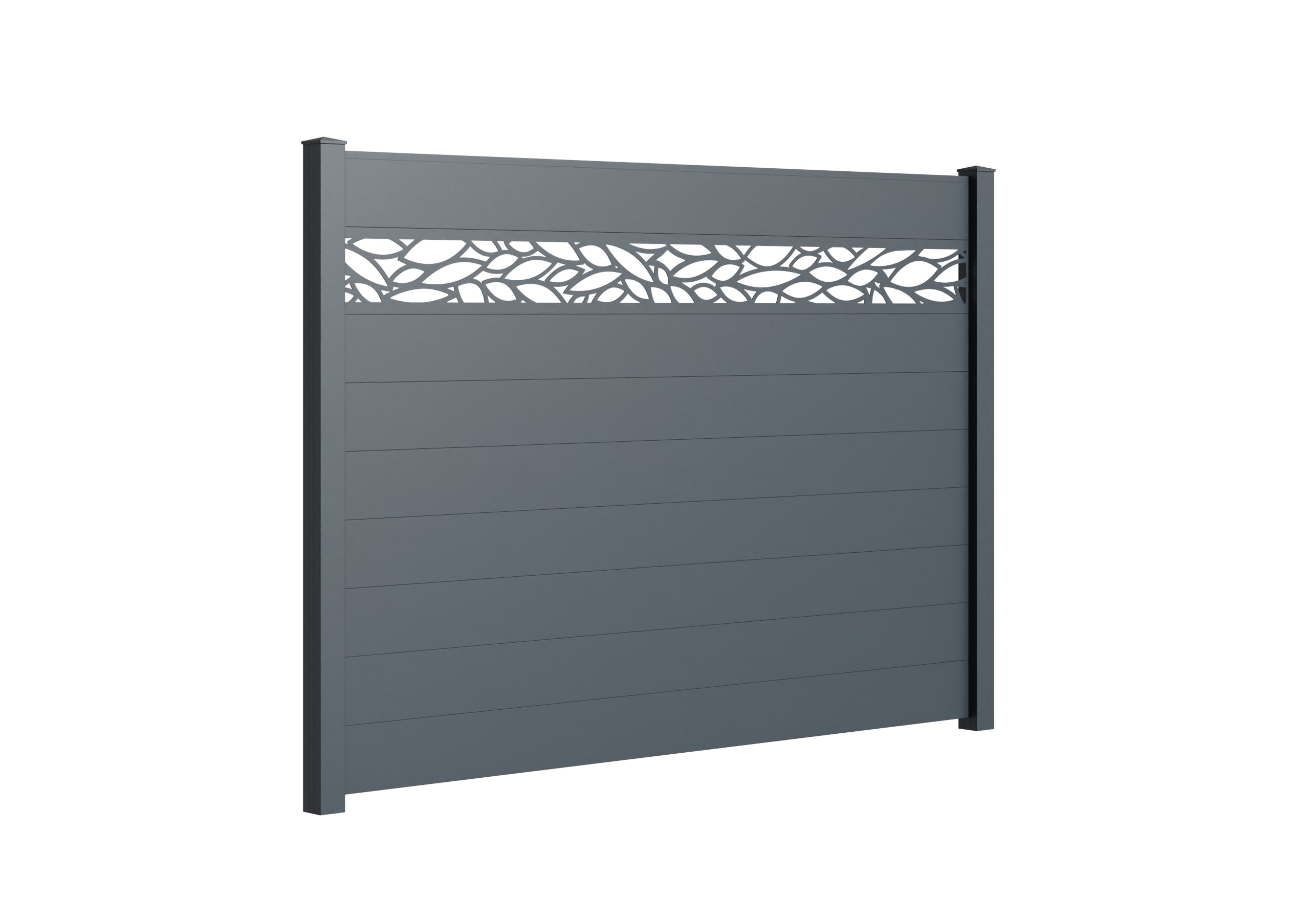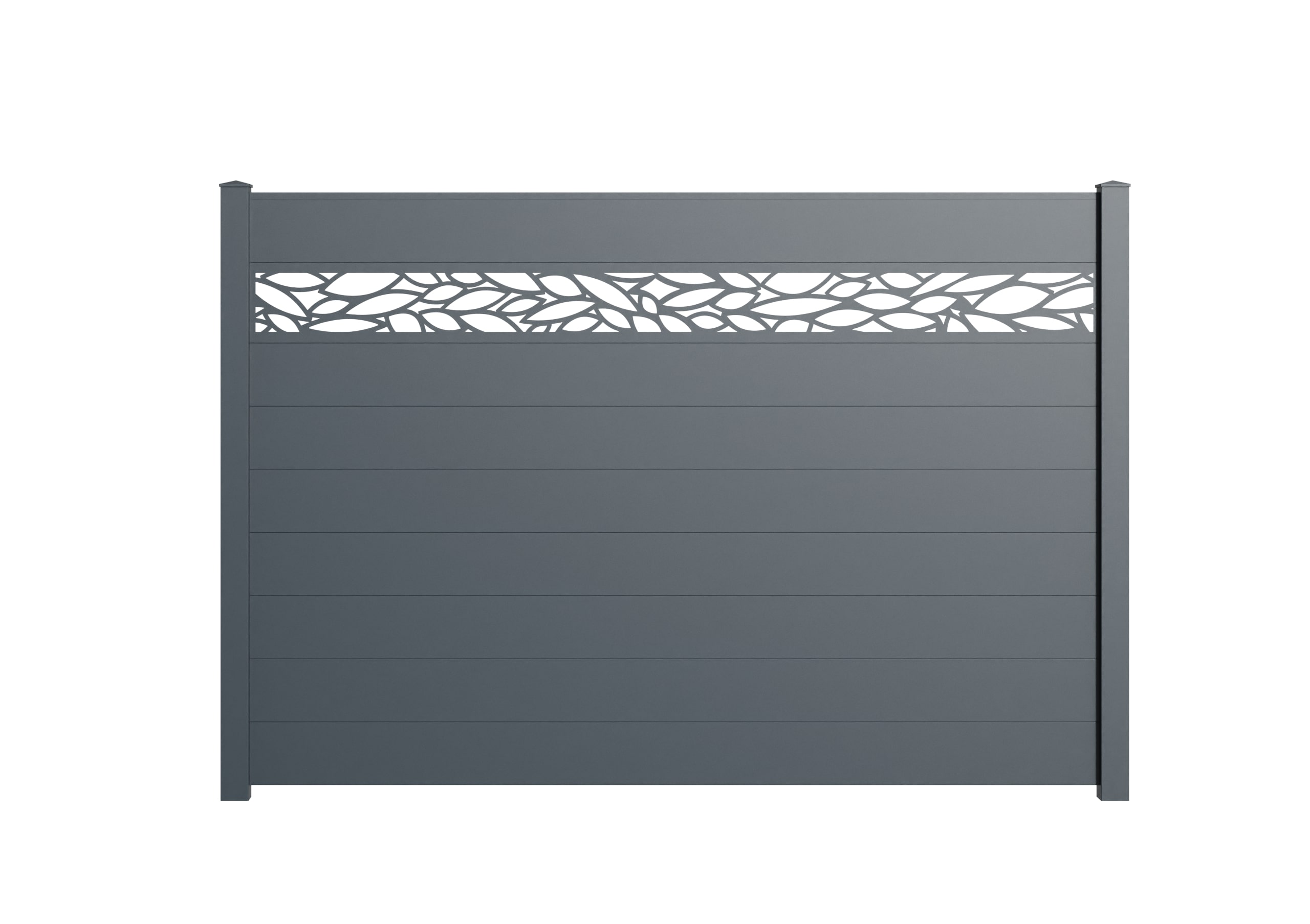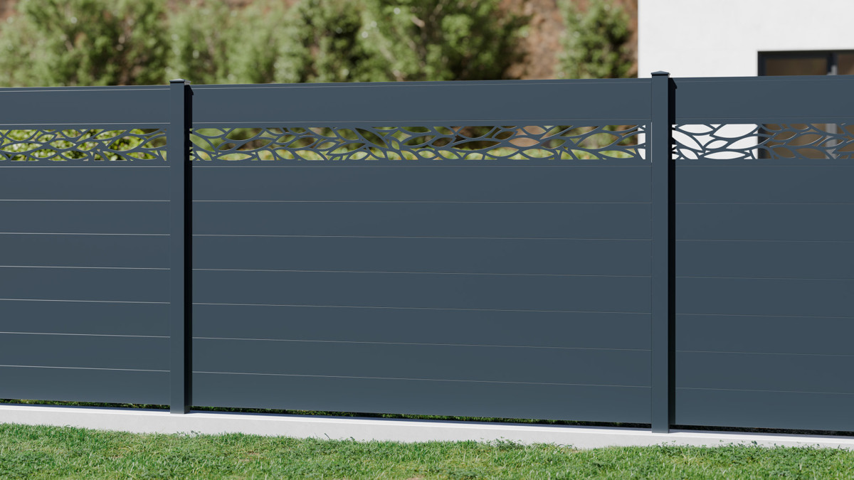 La clôture SONORA se distingue par son design plein à lames horizontales, rehaussé d’une lame décorative ajourée ou découpée au laser selon vos envies. Cette touche graphique au cœur du panneau apporte une note d’originalité tout en conservant la discrétion et la protection visuelle d’une clôture pleine. La finition droite et sans cadre apparent renforce l’allure contemporaine de ce modèle, idéal pour mettre en valeur les façades modernes et les extérieurs soignés.